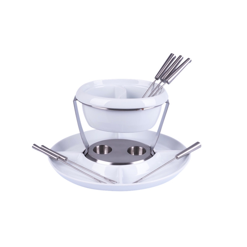 Schokofondue mit Doppelkammer Porzellan/Edelstahl, 10-teilig, inkl.Servierschale